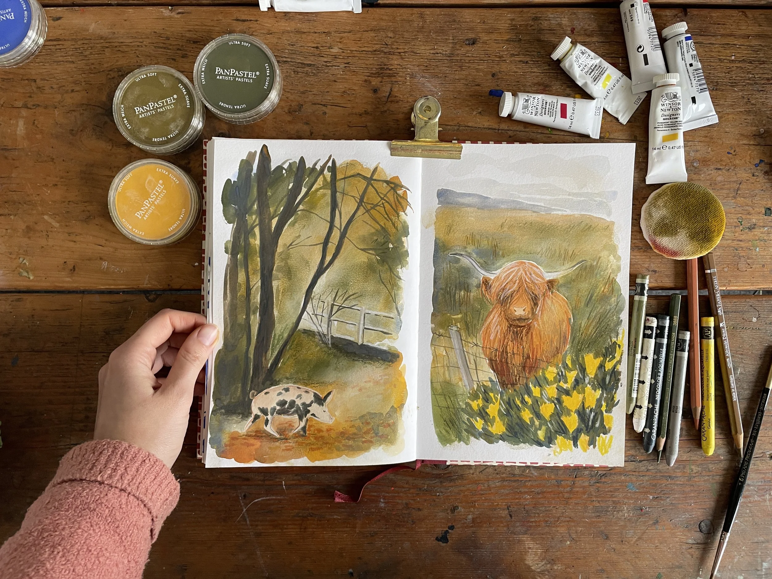 My Patreon is dedicated to celebrating the joy of sketchbooks and the creative process. It’s a welcoming, encouraging space where my patrons and I grow together through drawing challenges, themed content, and monthly live Zoom sessions. Each month, we explore a different artistic theme, ranging from colour theory and contrast to painting trees, mastering shadows, and more.